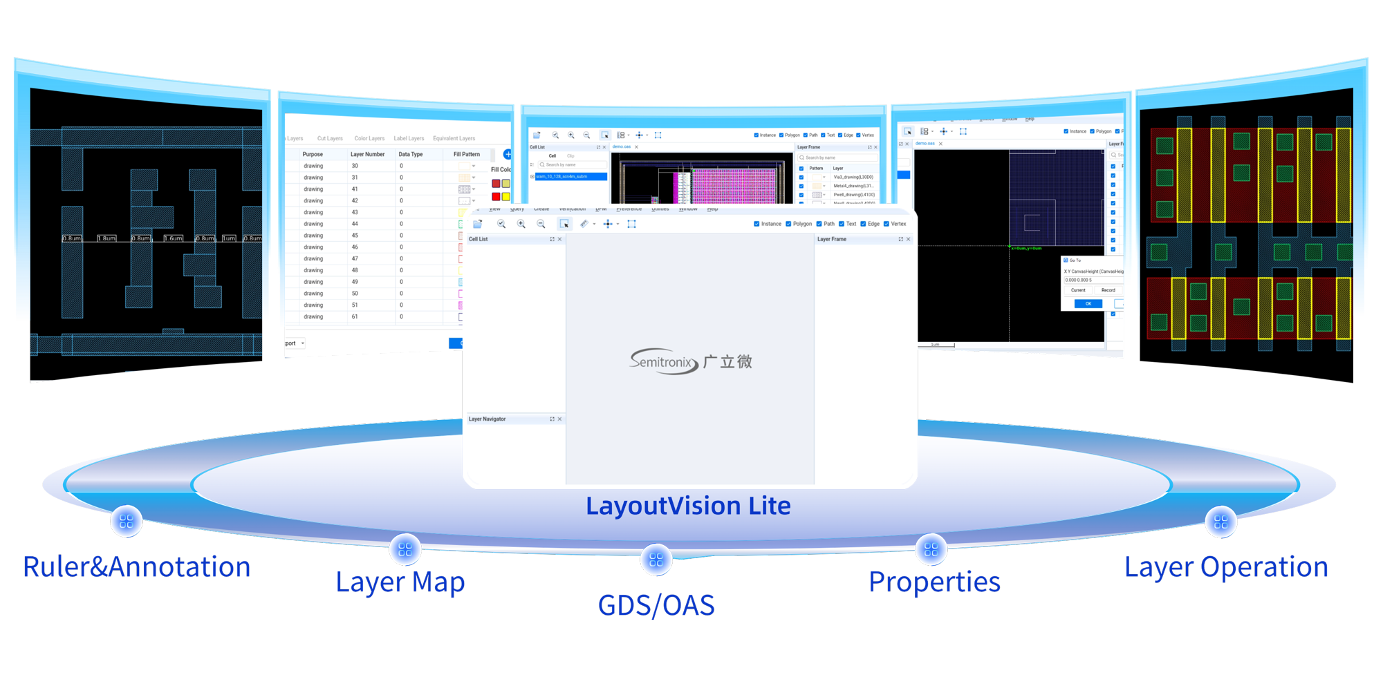 支持图层定义管理、图形量测标记、图形查找与属性查看等功能,满足各类版图查看的场景需求。