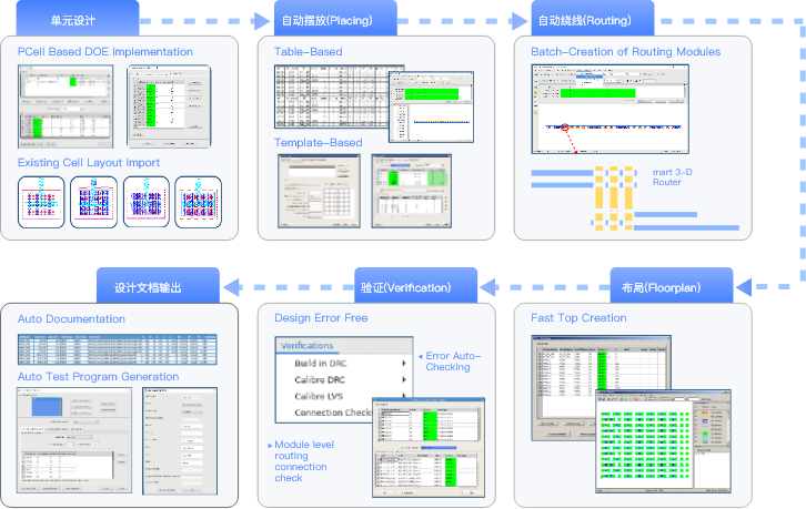 根据工艺设计特点,依托软件强大的算法,满足工艺版图设计中复杂的设计规则的要求,实现高效率、无差错的版图设计